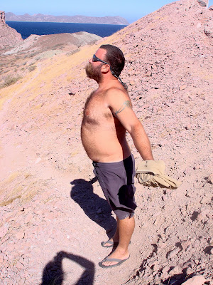 Among the highlights of our stay at Isla San Francisco was visiting with our friends on the S/V Om Shanti, eating homemade ice cream with new friends on S/V Scream on Josh's birthday, and hiking all over Isla San Francisco. We managed to climb to the top of one of the ridges overlooking the anchorage while nearly getting blown down the other side. It was comparable to getting sand blasted by a hair dryer while clinging to a cactus. Needless to say, it was well worth the effort to get a bird's eye view of the giant swells ripping around Isla San Francisco.